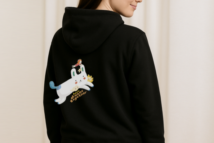▪︎ 衣服顏色:黑色(跳耀兔兔款) / 白色(彩色刺蝟款) ▪︎ 衣服版型:中性款 ▪︎ 衣服:Gildan|88500 亞規連帽T恤 ▪︎ 印刷:DTF熱燙轉印